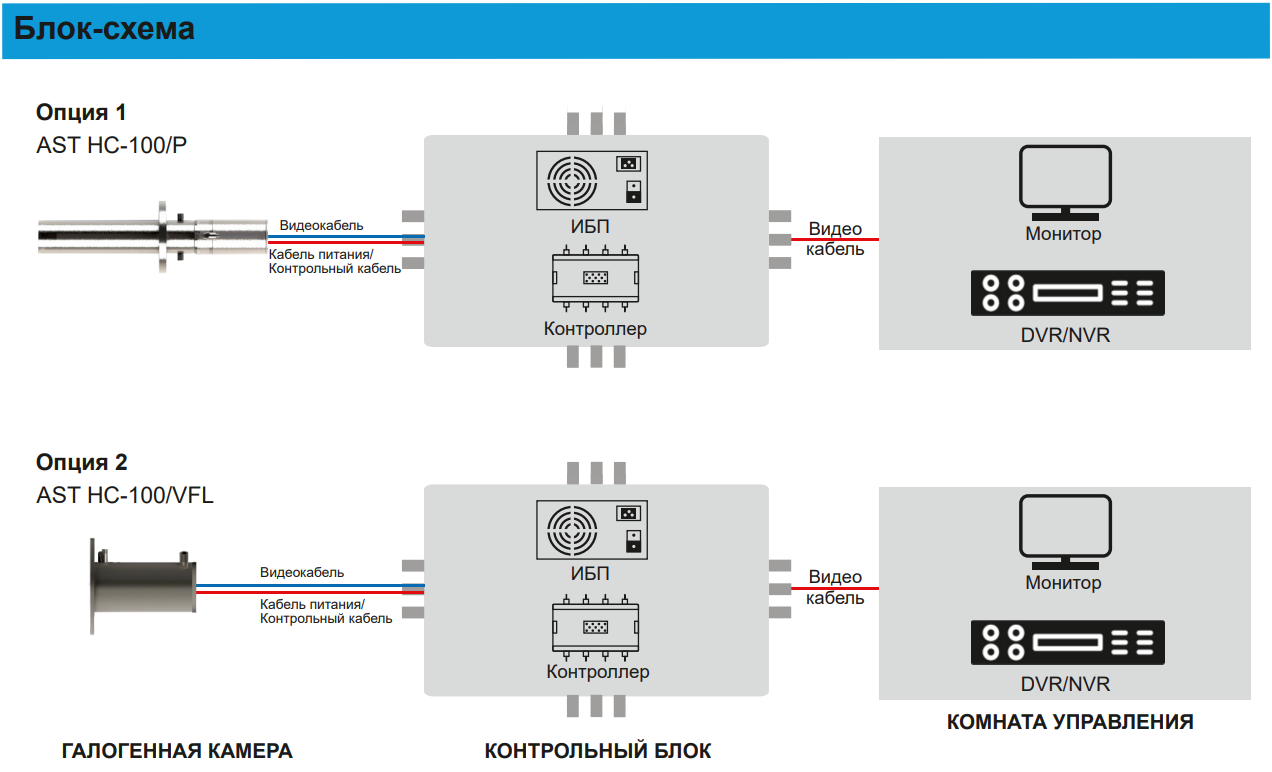 AST HC-100/P оснащена системой водяного охлаждения и использует сжатый азот/воздух для охлаждения камеры. Эта установка создает воздушную завесу перед отверстием объектива, эффективно предотвращая эрозию линзы, вызванную высокими температурами и пламенем печи. Данная модель монтируется в стенку печи.